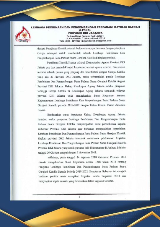 Alamat : Jl. Gedung Karya Pastoral, Lt 3, Jl Katedral No 7, Ps Baru Jakarta Pusat.